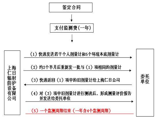 监测周期:每次委托的间隔时间是一年,每年含4个监测周期(3个月一个周期),每周期的监测结果随下周期个人剂量计交邮政速递或顺丰快递给委托单位。